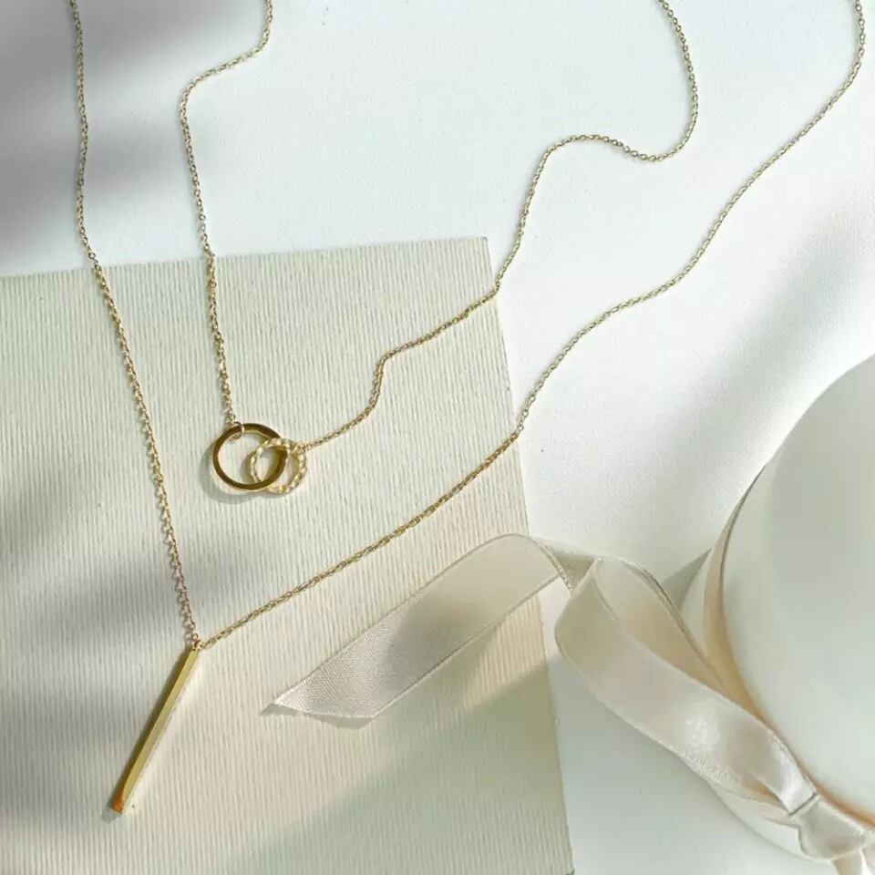 ダブルサークルとメタルスティックネックレスの2本set。1本ずつ別々でも使えるので洋服に合わせてアレンジできます。